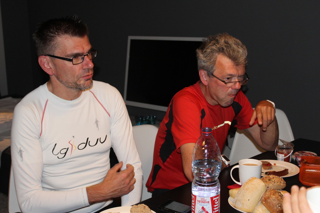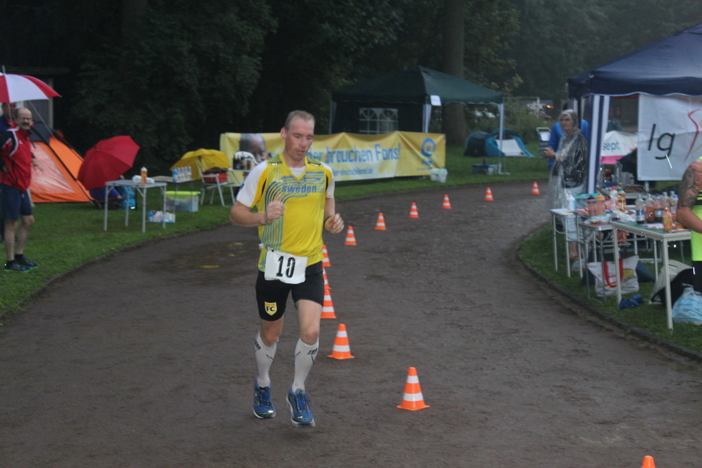 Auch die „Klatschweltmeister“ und „Motivationskünstler“ Heidi und Dirk Stangneth kommen von der LG DUV. Darüber hinaus hatte Thomas Klingerberger seine Familie und Walter seine Frau zur Unterstützung mitgebracht, Elke Sittner und Casten Böhlke halfen ebenfalls und auch die 50km-Läufer und schnellen 100km-Läufer unterstützten die verbleibenden 100km-Kämpfer trotz eigener müder Beine. Meine Aufgabe war, die Läufer und das Rennen zu beobachten, Fotos zu machen, das ganze Organisatorische und im Krisenfall zu helfen. Insgesamt hatten wir ein riesiges Betreuungsteam, was perfekt zusammenarbeitete.