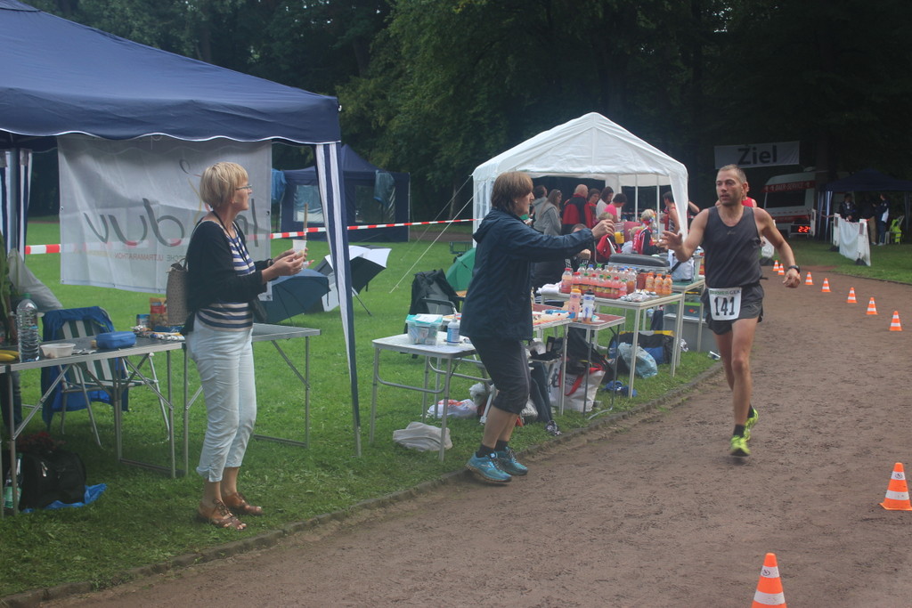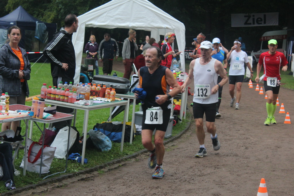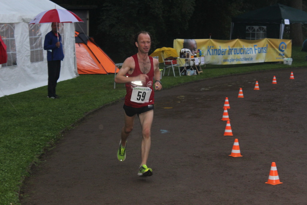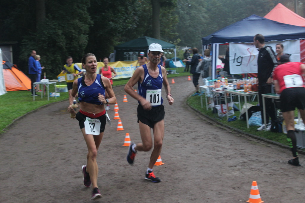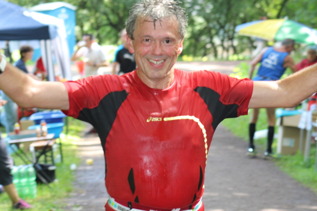 Roland Kraus hatte sehr zu kämpfen. Zum einen war er nach dem 100 Meilen-Mauerweglauf von letzter Woche noch nicht ganz fit, zum anderen litt er etwas unter dem Wetter. Den Umständen entsprechend zeigte er eine klasse Leistung und sicherte damit zusammen mit Peter und Walter den zweiten Platz in der Mannschaftswertung 50+.