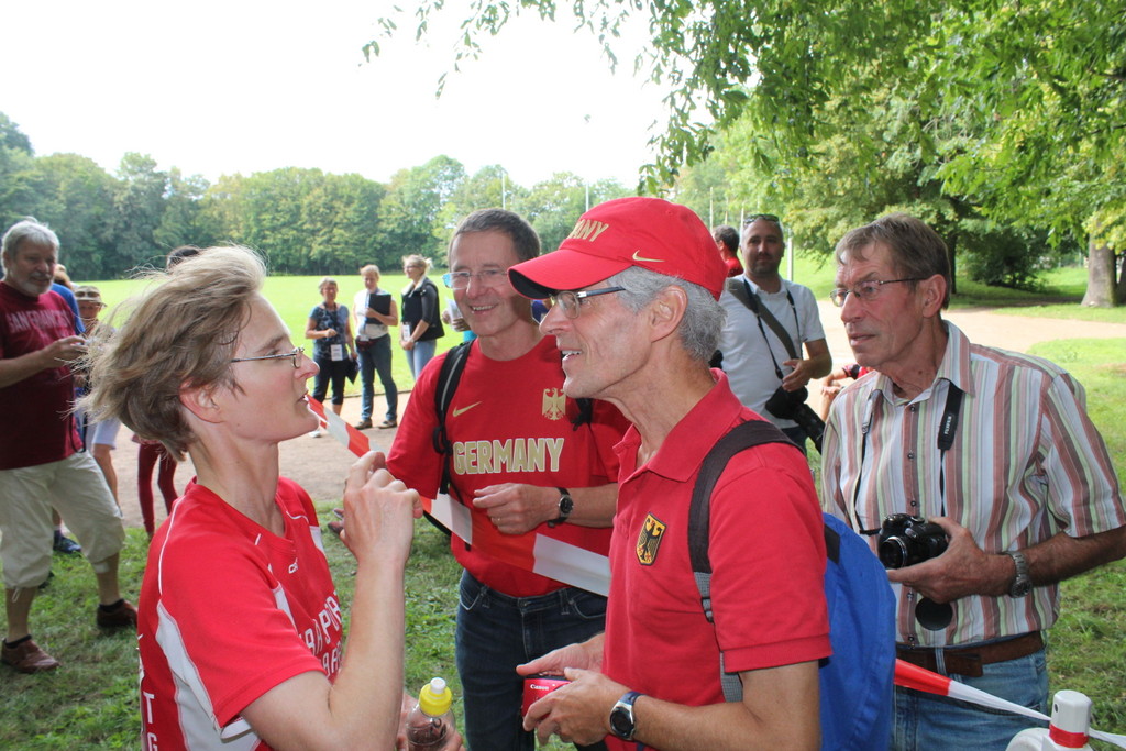 Es würde schwerfallen, unter all den erfolgreichen Debutanten, den Bestzeitverbesserern und den große Probleme überwindende Kämpfer eine Person besonders hervorzuheben, gäbe es Christel Kunze nicht. Sie ist mit 79 Jahren unser ältestes Vereinsmitglied. Auf dem Bild ist sie zusammen mit Katharina, unserem jüngsten Vereinsmitglied. Beide in einem Wettkampf zu sehen, ist schon eine große Besonderheit. Christel wollte übrigens nach 20 km aufgeben, weil ihr das Wetter ein wenig zu schaffen machte und hatte sich auf einem Stuhl ausgeruht. Doch plötzlich stand sie mit den Worten, „ich bin doch nicht zum Sitzen und Quatschen hierhin gefahren“ auf und vollendete die letzten drei Runden. Wer diese Frau gesehen und erlebt hat, kann einfach nicht wegen einer Blase oder der üblichen Muskelermüdung aufhören. Unmöglich!